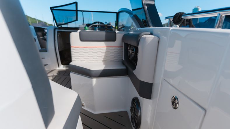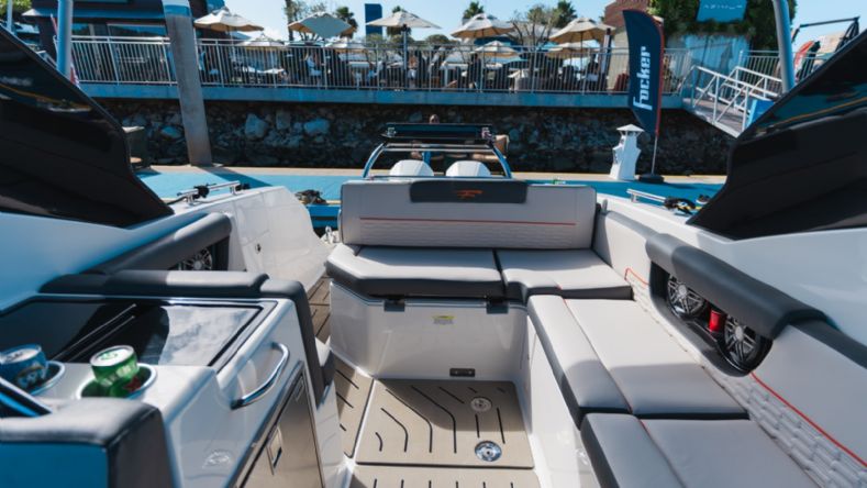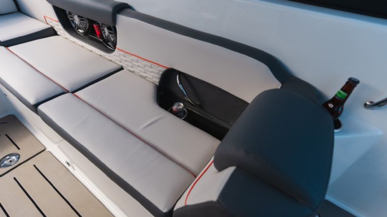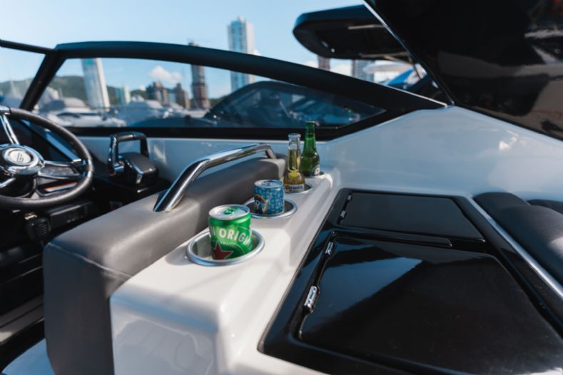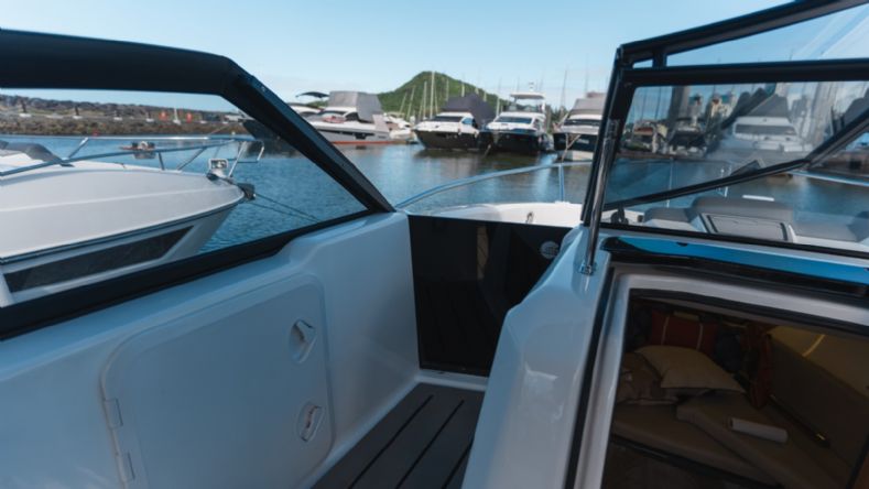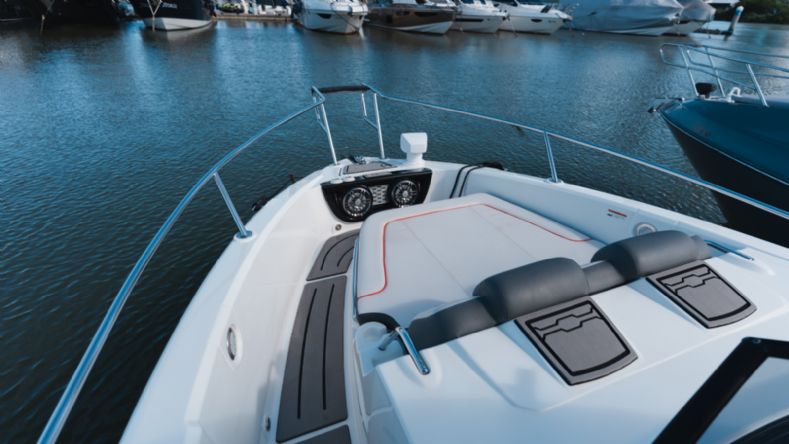 • Solário de proa rebaixado com estofamento anti-mofo;