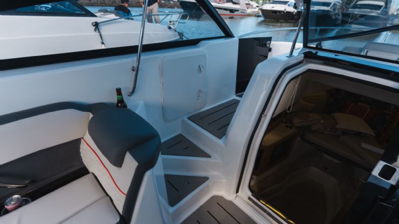 • Porta de Acrílico para passagem para proa;