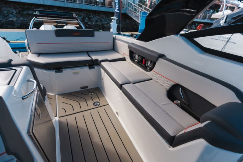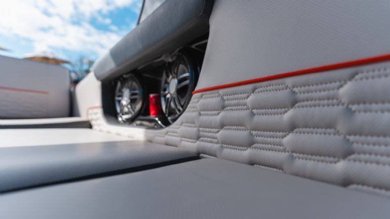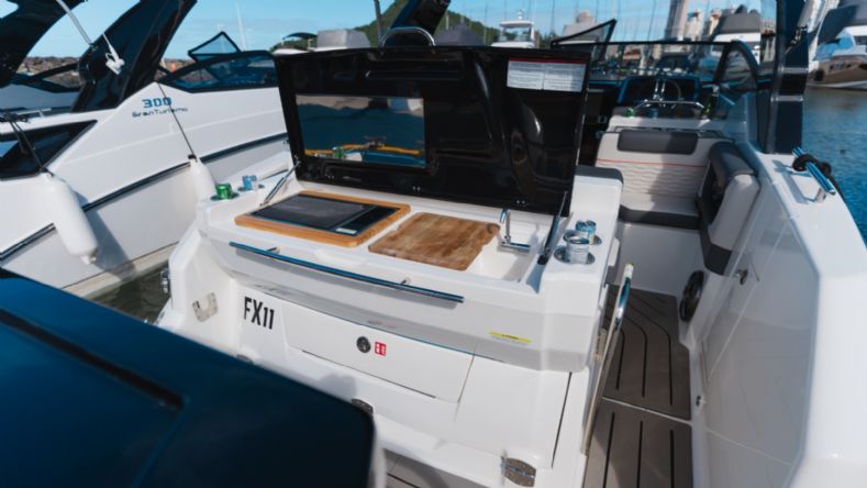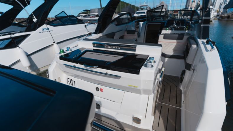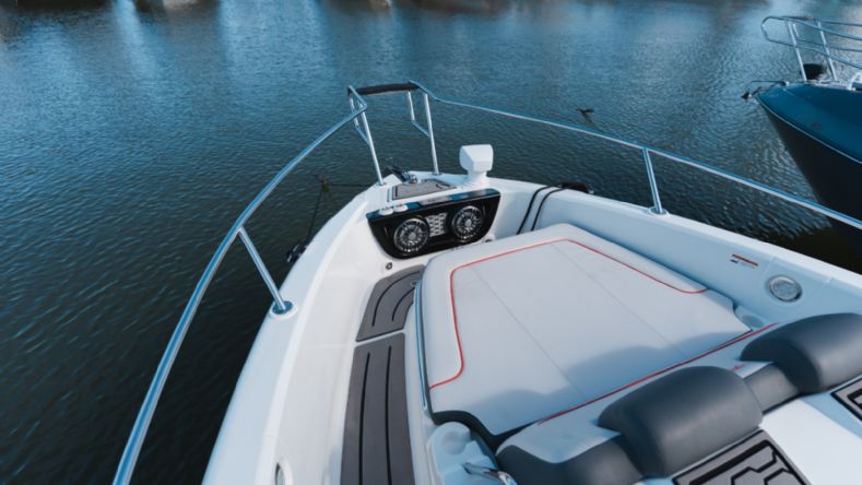 • Solário de proa rebaixado com estofamento anti-mofo;