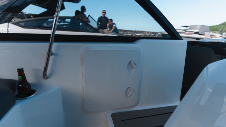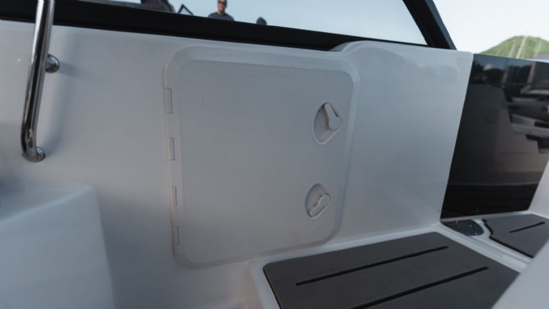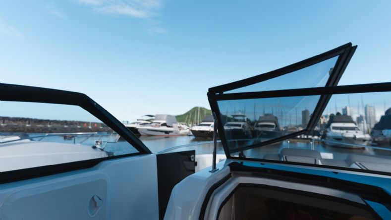 • Portinhola do parabrisas para passagem para proa;
